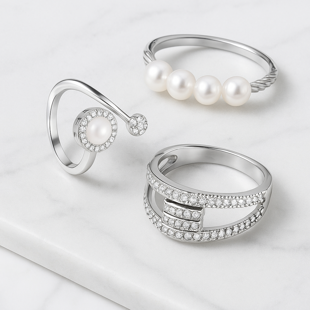 Een verfijnde selectie van elegante ringen, ontworpen om kracht en kalmte samen te brengen in één tijdloos ontwerp.